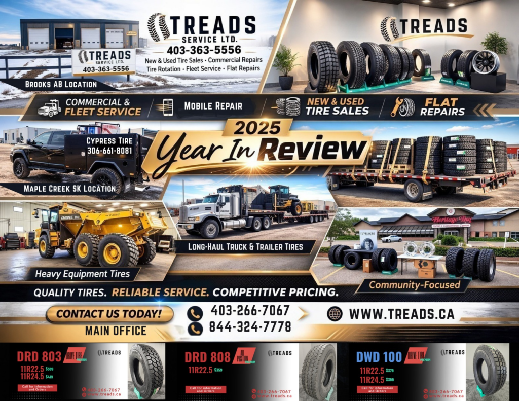 This year has been one of strong growth and momentum at Treads Distribution. It wouldn’t have been possible without you. In 2025, we expanded our reach across Western Canada, opened two new tire shop locations in Brooks, Alberta and Maple Creek, Saskatchewan, and continued building the presence of Doublestar Tires as a high-value, high-performance option for fleets and farms alike. More importantly, we strengthened the relationships that matter most, with hardworking customers who rely on performance, value, and service they can count on.