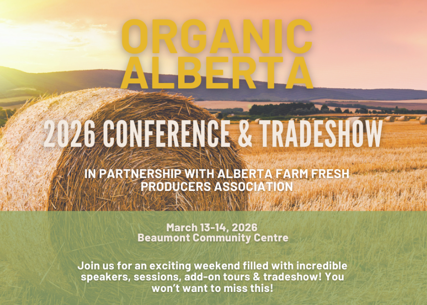 On March 13–14, 2026, join us at the Beaumont Community Centre for one of Alberta’s most dynamic gatherings for organic and sustainable agriculture. Connect with hundreds of fellow farmers, processors, and agricultural professionals from across the province at this years Organic Alberta Conference & Tradeshow. Participate in engaging workshops, hear from expert speakers, and explore the trade show, where you can meet industry leaders, discover new products and services, and build valuable connections that support your farm or business.